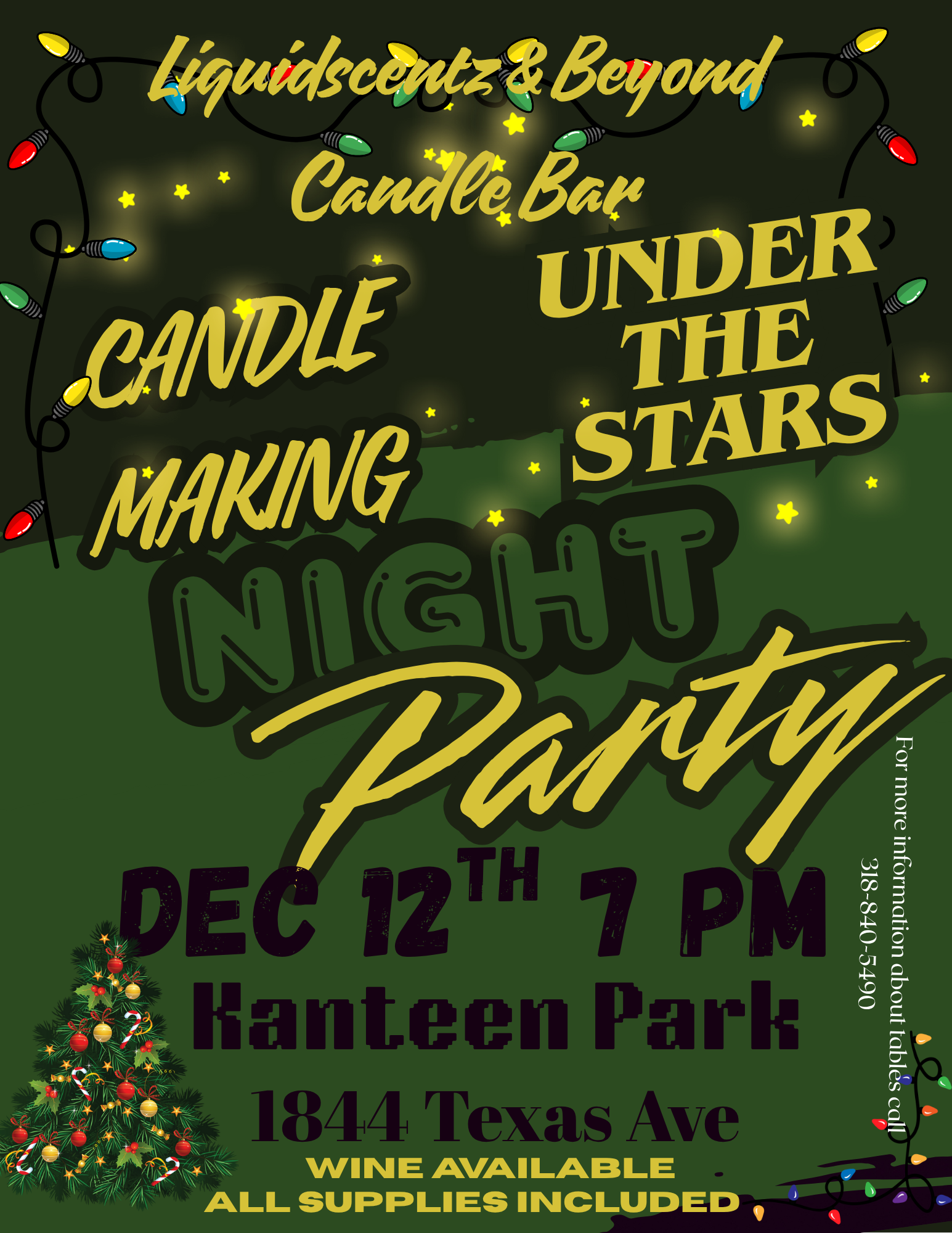 CANDLE MAKING UNDER THE STARS Dec 12th 1844 Texas st 7pm sharp MAKE SURE YOU CHOOSE CANDLE MAKING or NON-CANDLE MAKING